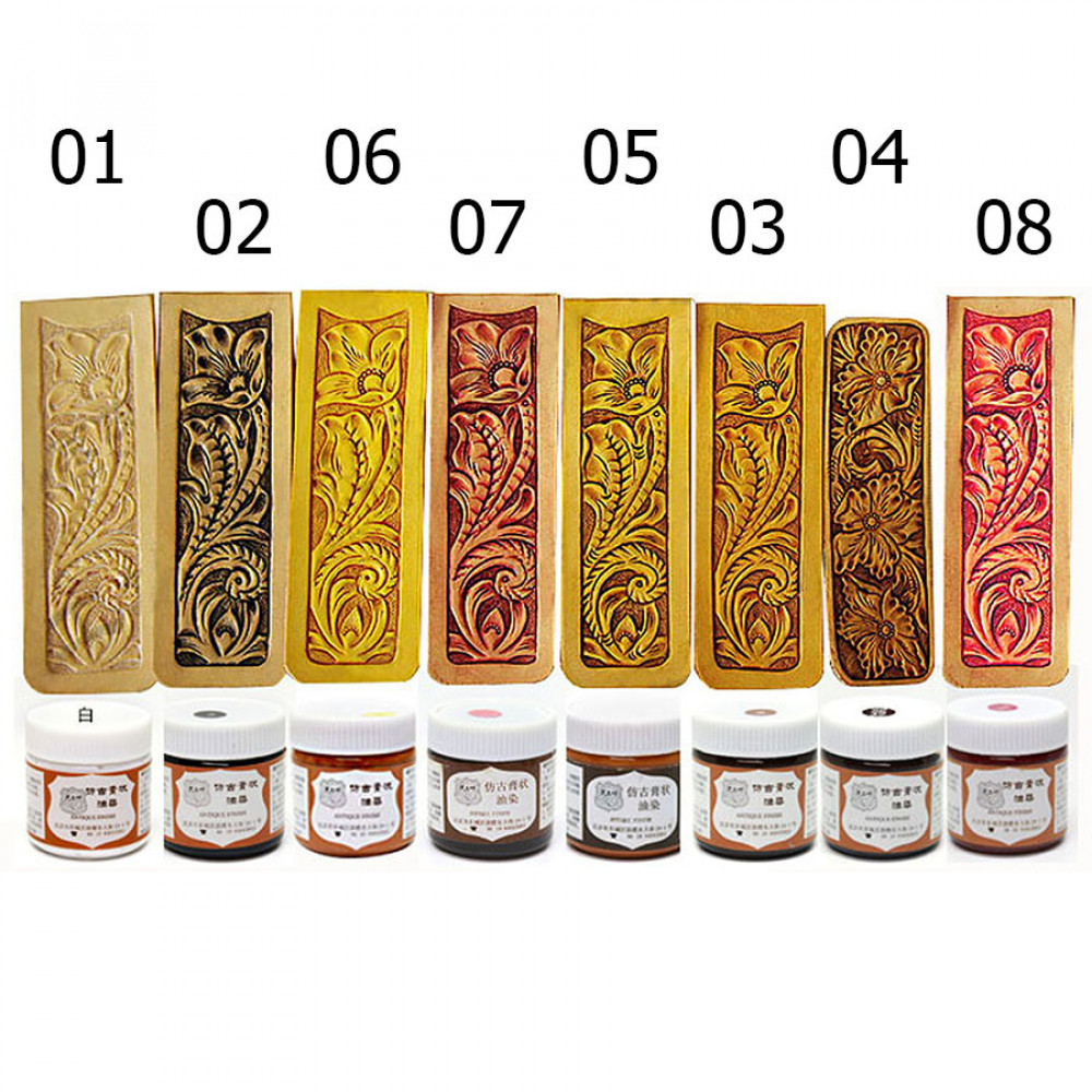 Винтажная масляная краска-финиш для кож растительного дубления. Антик придает тисненому рисунку винтажный вид, делает изображение более живым и объемным.