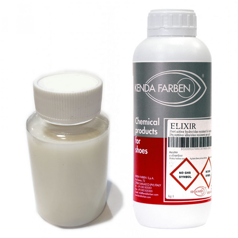 ELIXIR улучшает цвет кожи, избавляет от «разнотона» на замше и нубуке, придает изделию защиту от влаги и грязи. ELIXIR является очень эффективным на спилке и нубуке, отлично подходит для мягкой кожи, для использования на тканях. ELIXIR можно использовать как защитное финишное средство против водных и масляных пятен.