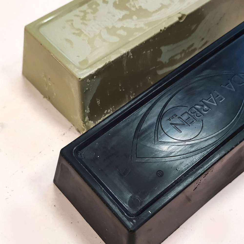 CERA ABRASIVA – абразивный воск для шлифования верха кожаных изделий, низа подошв, каблуков, урезов. Особенно рекомендуется для работы с крастом. Способ применения: использовать с х/б полотняной щеткой на скорости 800 -1000 об/мин.