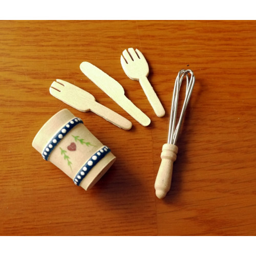 Кухонная утварь для куколок - 5 предметов. Подойдет для оформления кукольных домиков или румбо..