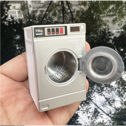 Серебристо-белая стиральная машинка-автомат (дверца открывается) для кукол. Миниатюрная бытовая техн..
