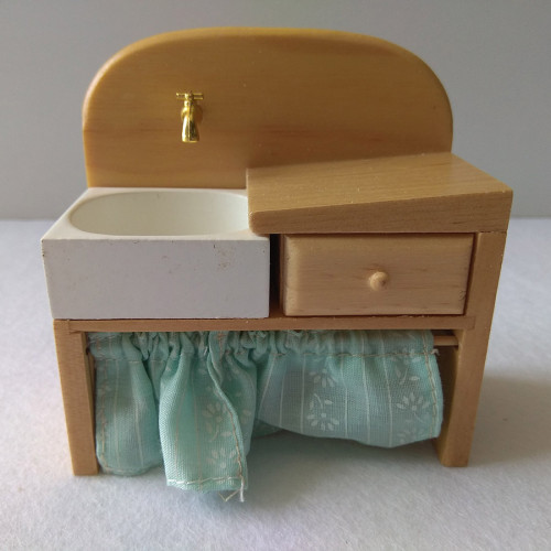 Миниатюрная раковина с ящиком и текстильной шторкой для кукольной ванной комнаты - Миниатюра для кук..