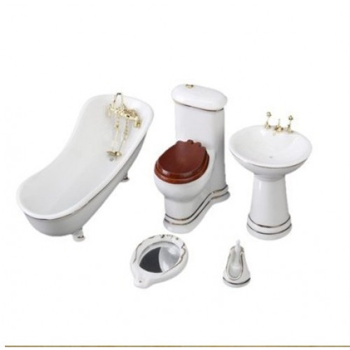 Аксессуар для ванной комнаты в кукольный дом или румбокс масштабом 1:12Цвет белый, с позолотой и рас..