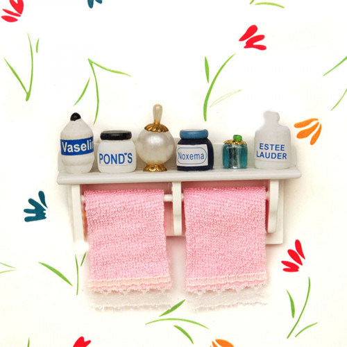Полка для ванной комнаты с полотенцами и большим набором косметических средств - подойдет для куколь..