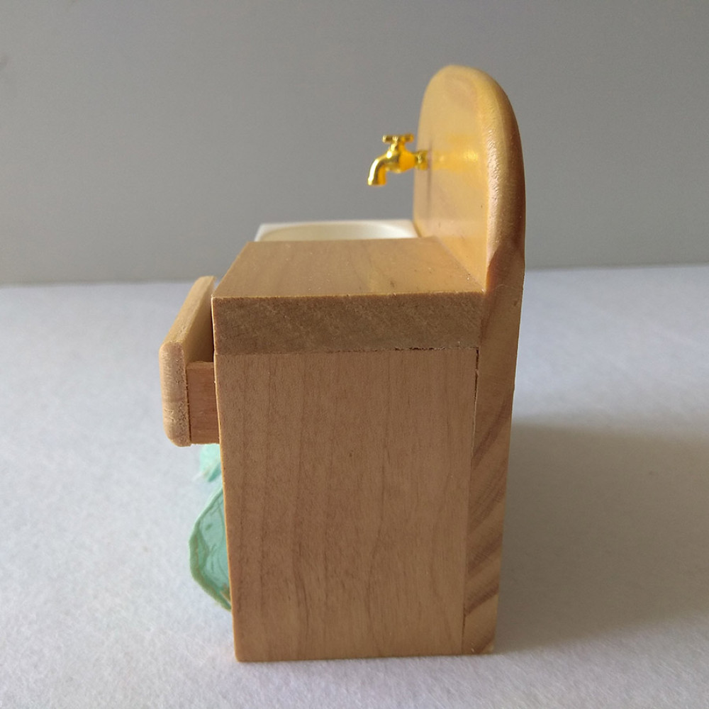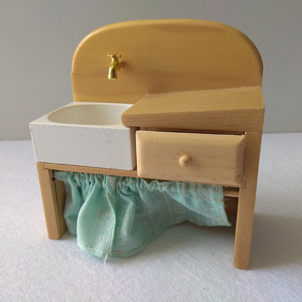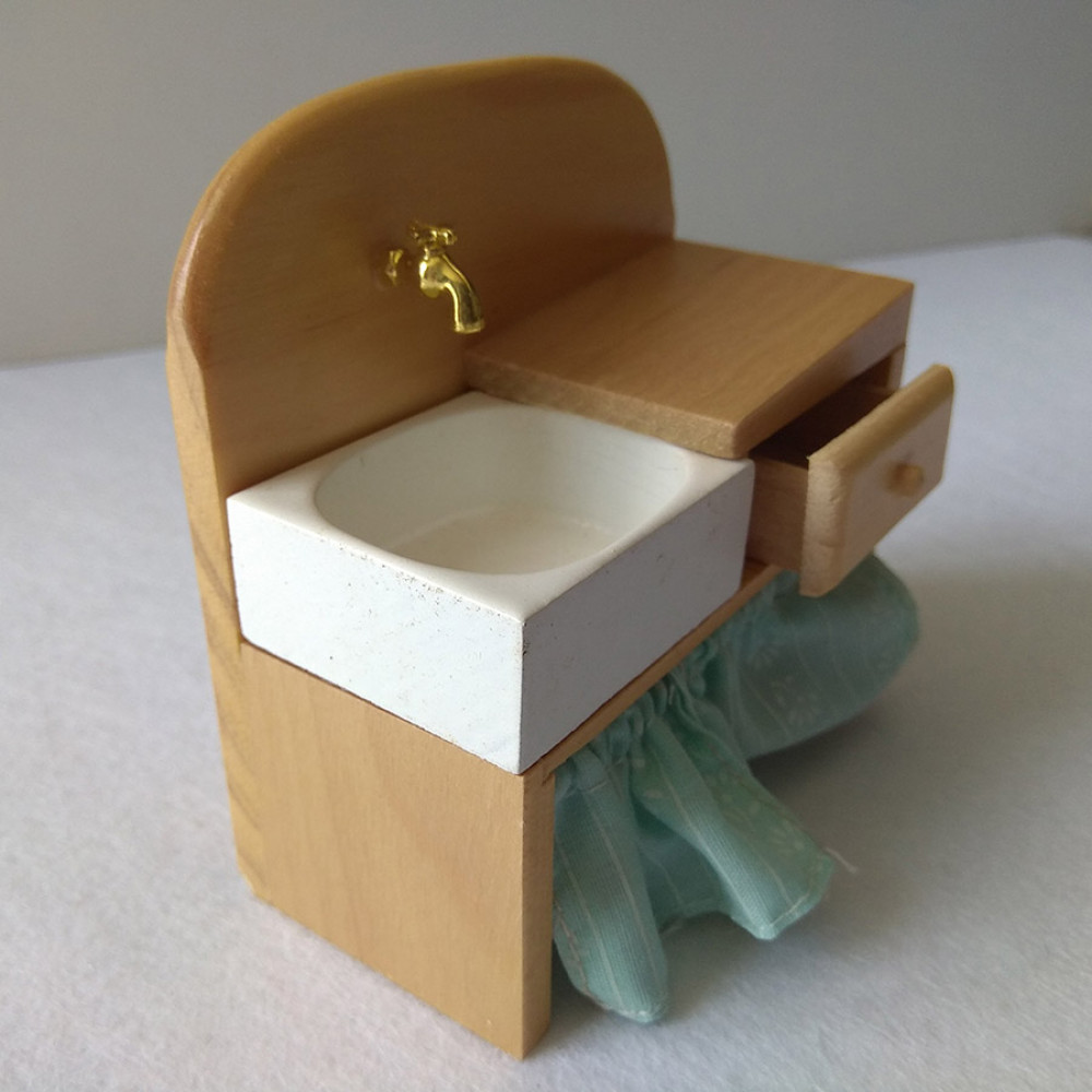 Миниатюрная раковина с ящиком и текстильной шторкой для кукольной ванной комнаты - Миниатюра для кукол (размер около 12 см).