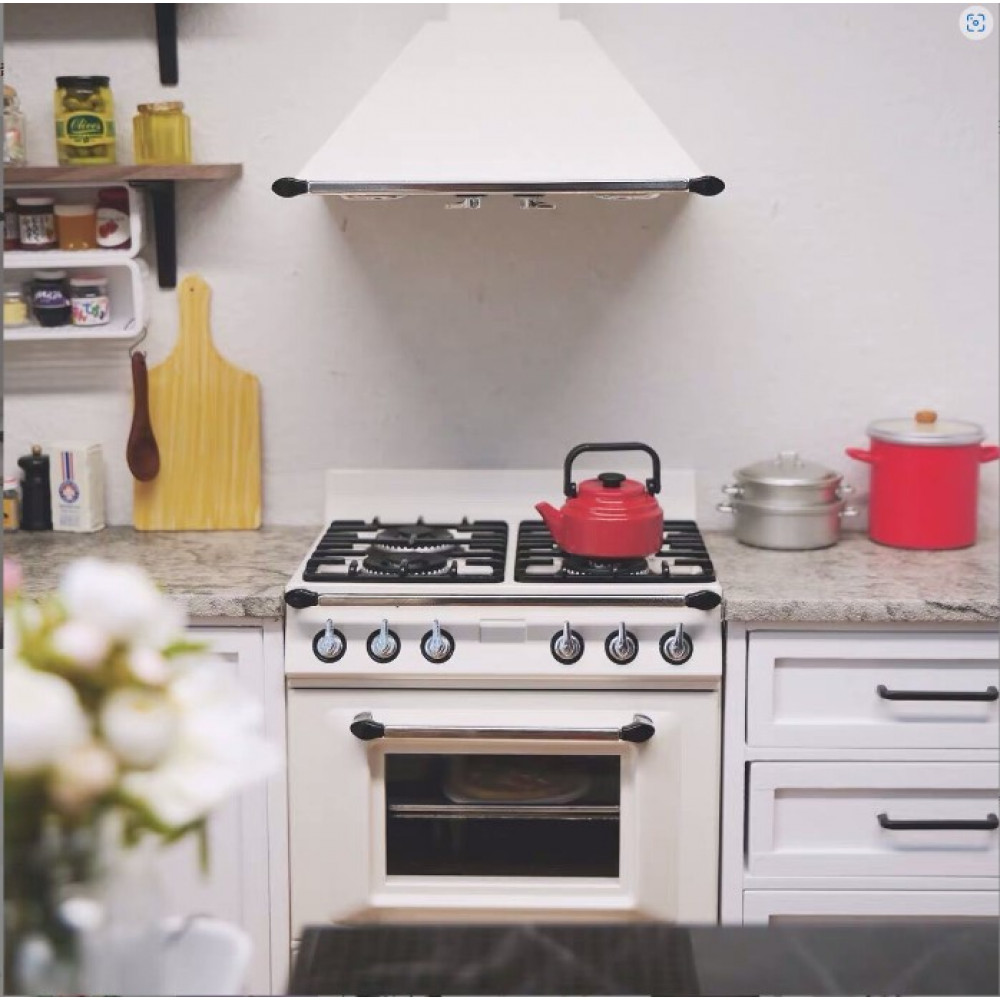 Миниатюрный чайник с крышкой красного и белого цветов. Кукольная миниатюра для румбоксов и кукольных домиков масштаб 1:12