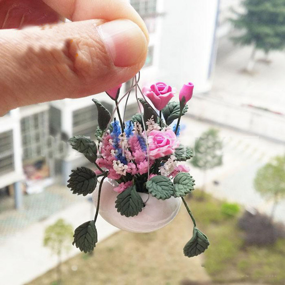 Цветы в подвесном кашпо для кукольного дома 1:12