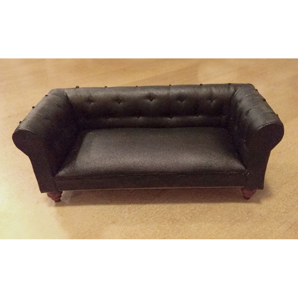 Диван для кукол 3-местный Черный Миниатюра 1:12