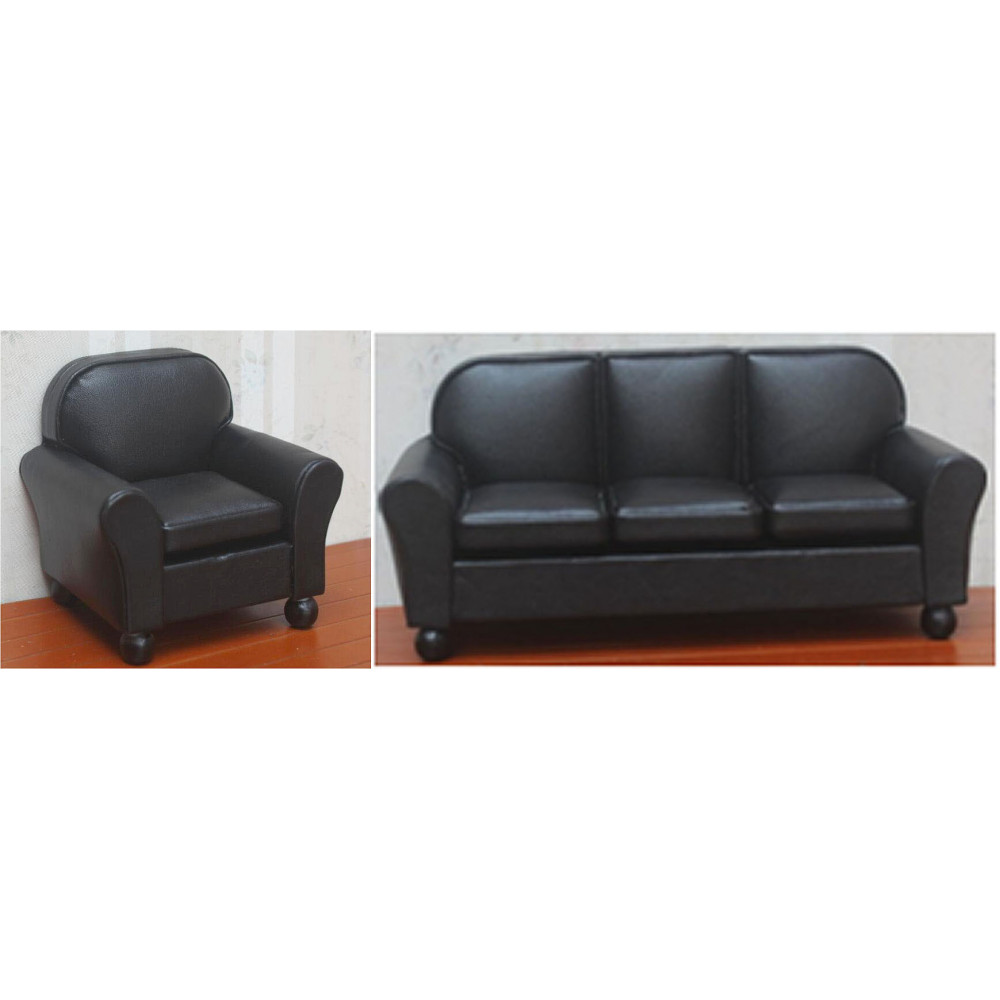 Диван и кресло для кукол Черный Миниатюра 1:12