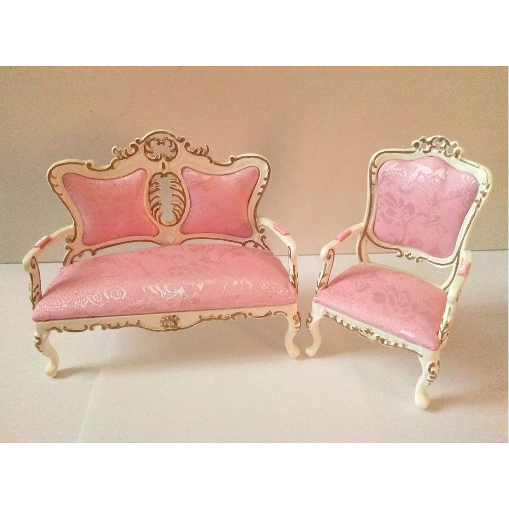 Диван и кресло для кукол Золото на белом Миниатюра 1:12