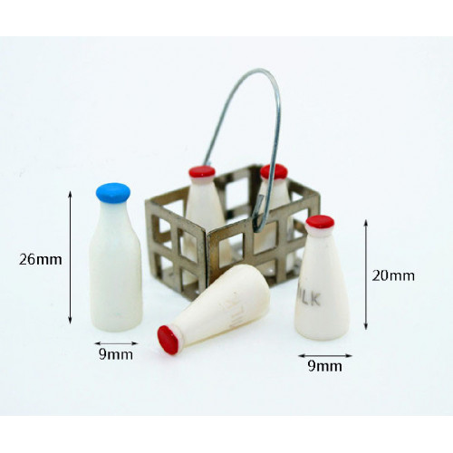 Миниатюрные бутылочки с молоком (5 шт) в корзине для кукол, оформления кукольных домиков и румбоксов..