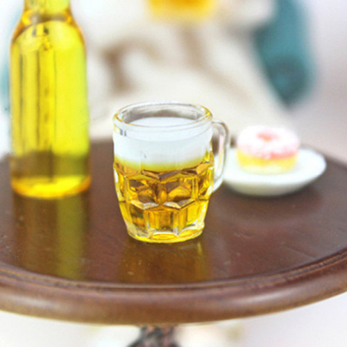 Кукольная миниатюра - прозрачная пластиковая кружка с пенным пивом . Такой стаканчик с напитком подо..