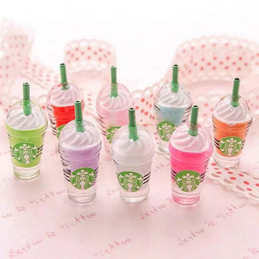 Совсем как настоящий - освежающий коктейль со взбитыми сливками для кукол. Прозрачный пластиковый стакан с крышкой, трубочкой и логотипом Starbucks. Такой стаканчик с напитком подойдет в качестве аксессуара для небольшой куколки или для оформления кукольных домиков и тематических румбоксов в масштабе 1:12.