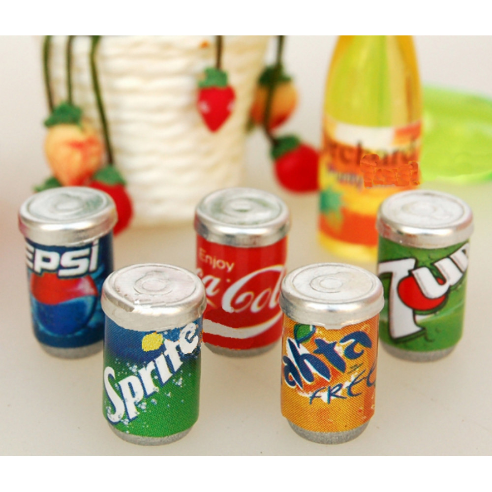Металлические баночки с напитками для кукольной кухни 5 шт.