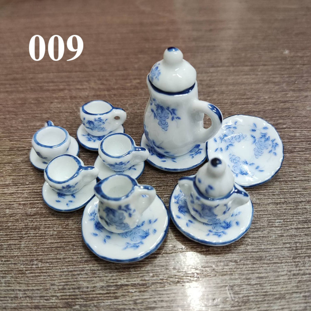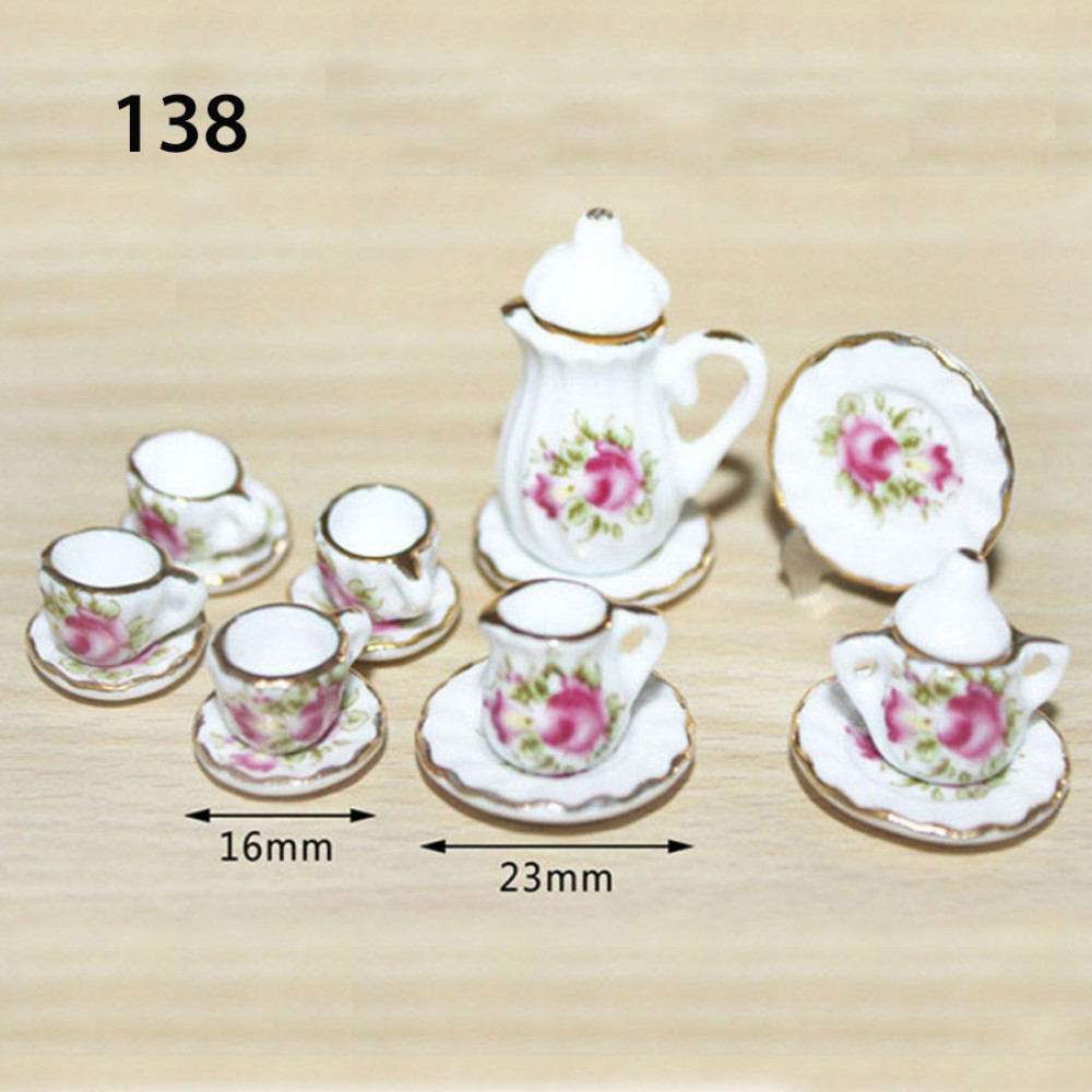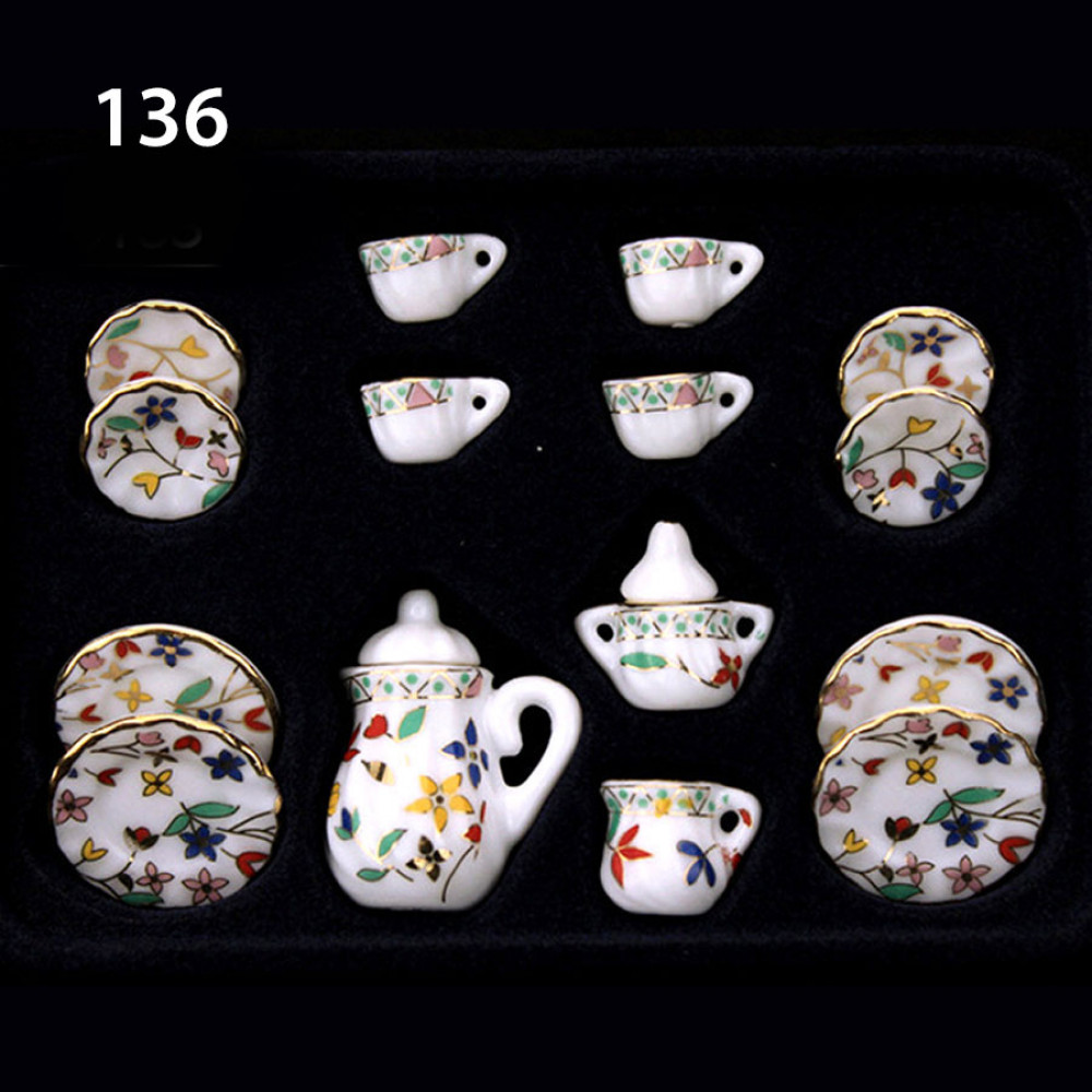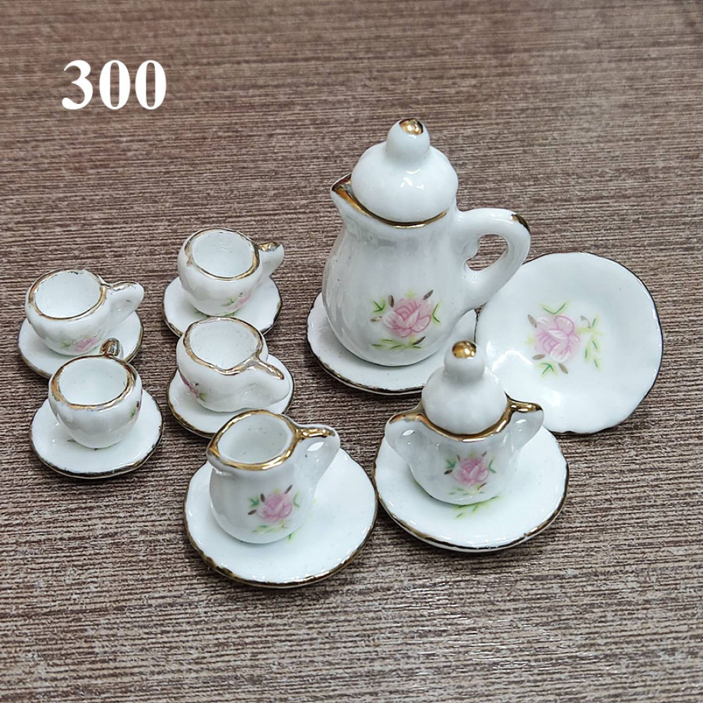 Миниатюрный чайный сервиз для кукол - 15 предметов. На сайте в списке опций можно выбрать большой ассортимент различных орнаментов и расцветок.