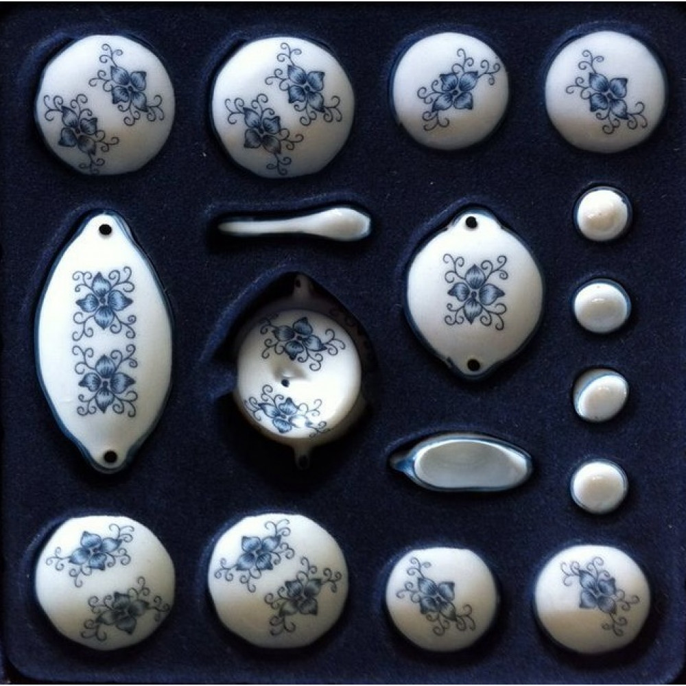 Фарфоровый столовый сервиз для кукол с Синим орнаментом 17 предметов