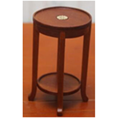 Миниатюрная деревянная двухэтажная подставка под цветы круглой формы для кукол. Дополнит интерьер ку..