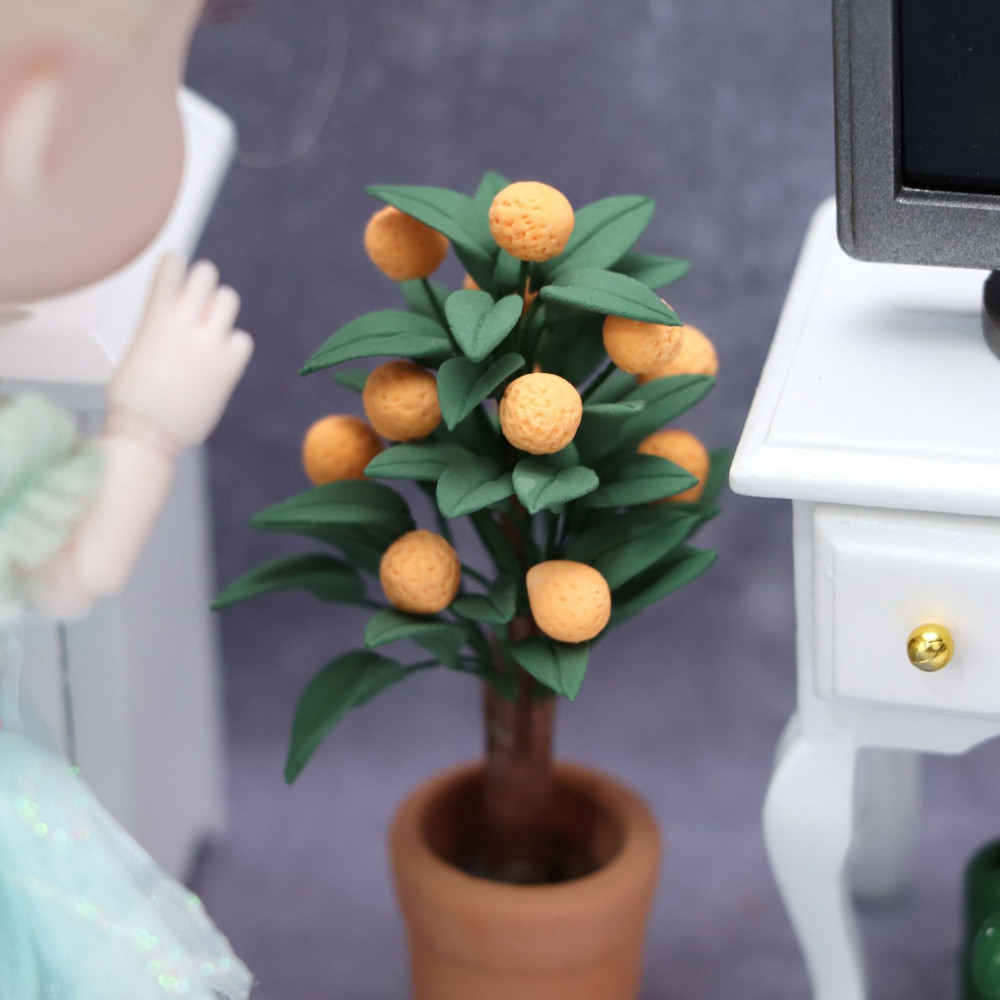 Апельсиновое дерево с плодами в горшочке . Цветы и деревца ручной работы украсят любой кукольный домик или румбокс.