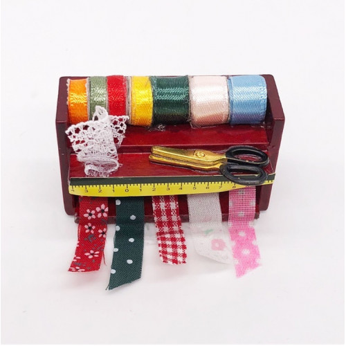 Миниатюрная шкатулка с лентами, сантиметром и ножницами для куклы-швеи. Такой предмет интерьера подо..