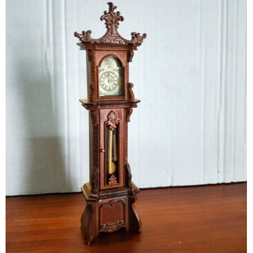 Часы напольные для кукольного домика с изящной резьбой Миниатюра 1:12Размеры: 55х25х185 ммДвер..