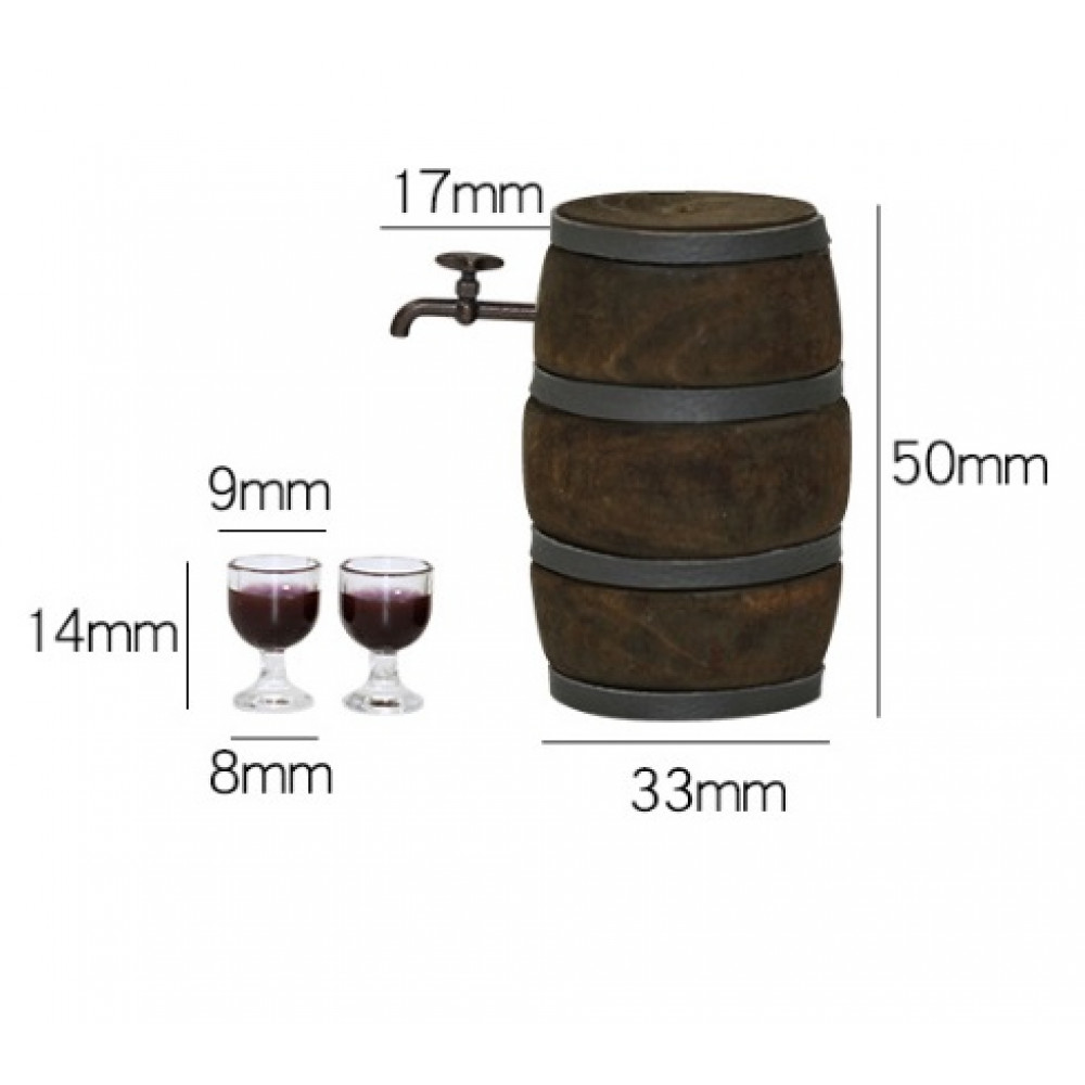 Бочонок вина для кукол, с 2 бокалами Миниатюра