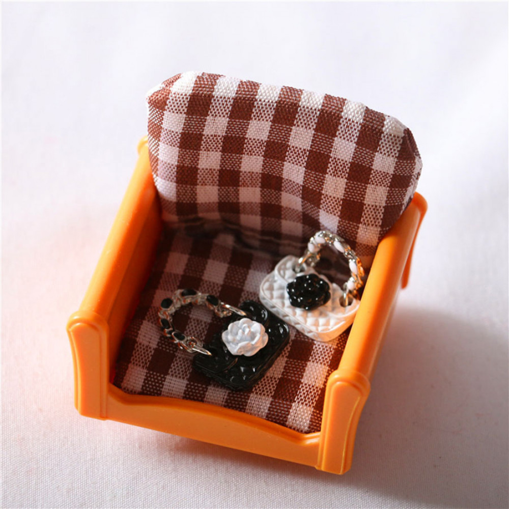 Миниатюрная женская сумочка для куколок ростом около 12 см. Сумочка с короткой ручкой и декором в виде цветка - для оформления румбоксов и кукольных домиков. масштаб 1:12