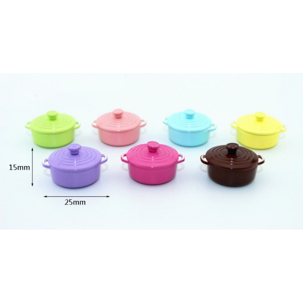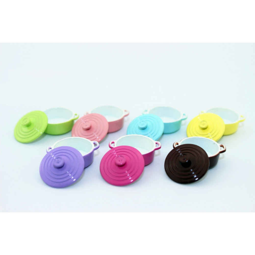 Милые веселые кастрюльки с крышкой для кукол – металлические, разных цветов (внутри белые).
