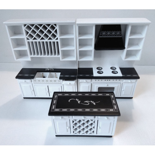 Миниатюрный кухонный гарнитур для кукол состоит из трех модулей. Масштаб 1:12 для кукол около 1..