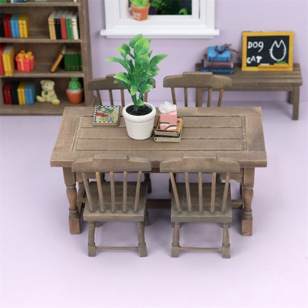 Стол прямоугольный и четыре стульчика для кукол - без них не обойтись при оформлении миниатюрной кухни, столовой или тематического румбокса.