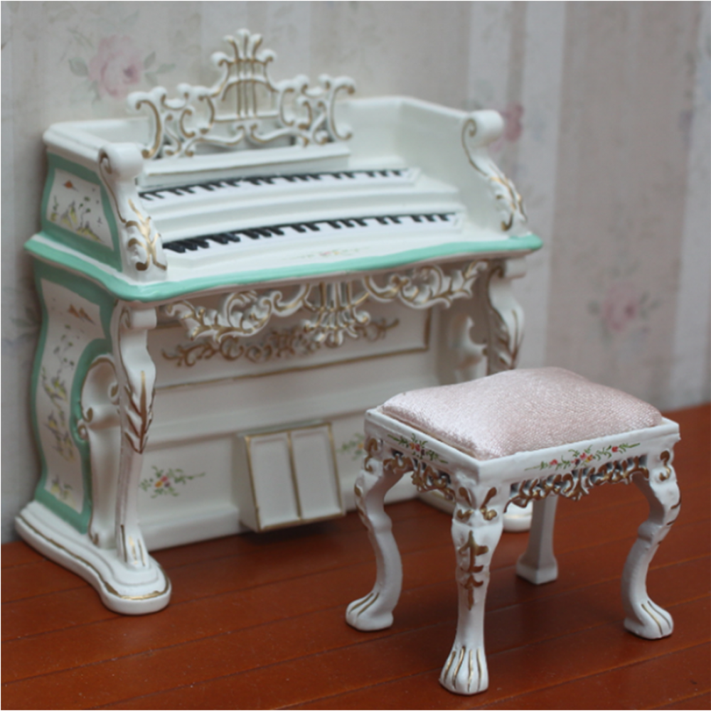 Миниатюра для кукол Клавесин со стульчиком Белый с росписью
