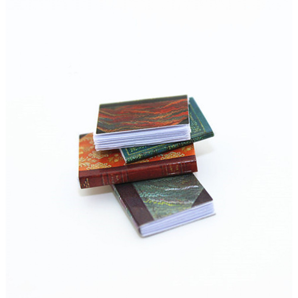 Миниатюрные книжки в наборе (4 шт). Неотъемлемый элемент классических и современных кукольных интерьеров. Полки и книжные шкафы, которые также можно купить в нашем магазине, будут выглядеть более обжитыми с книгами.