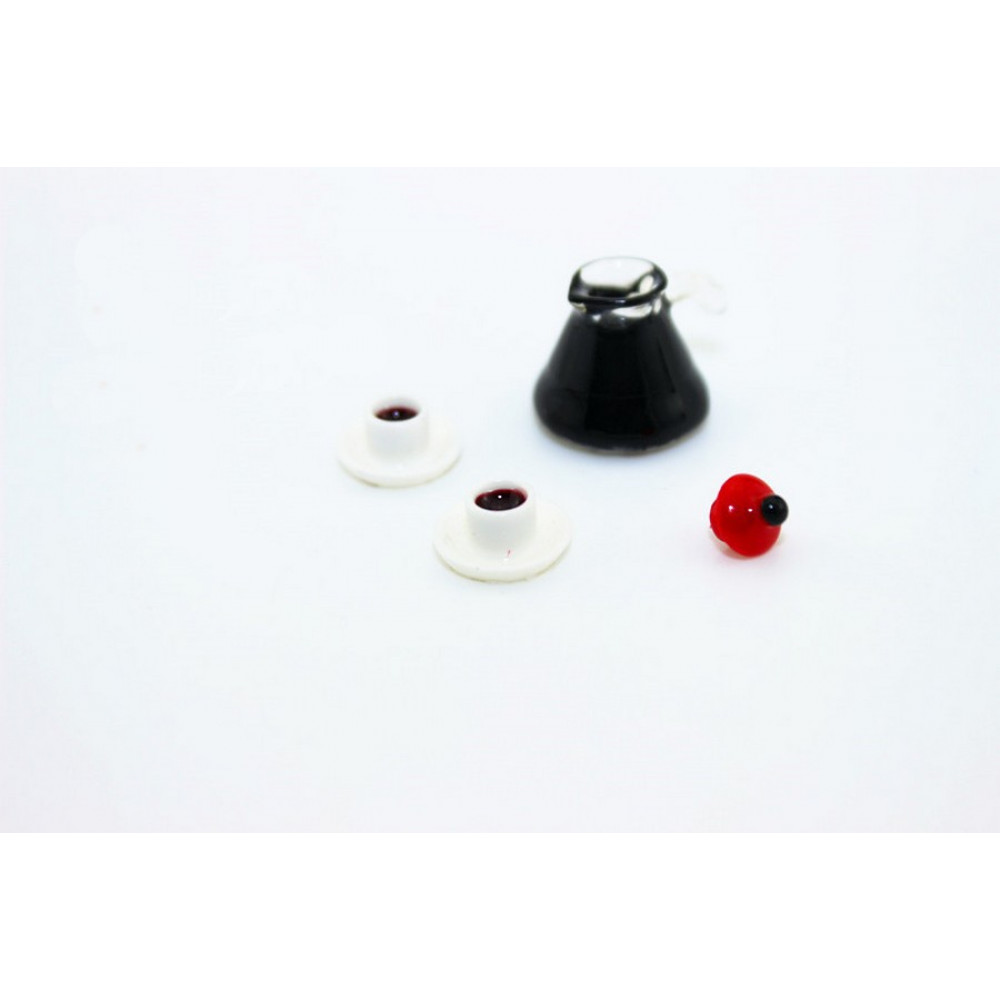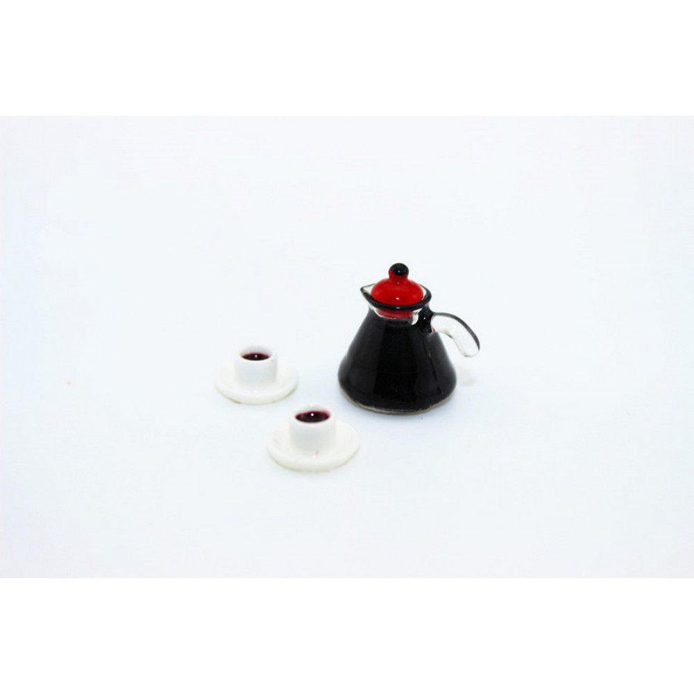 Миниатюрный кофейник с кофе и две кофейные пары с ароматным горячим напитком для куколок. С таким набором все готово к кофепитию в кукольном доме или румбоксе. Миниатюра Масштаб 1:12