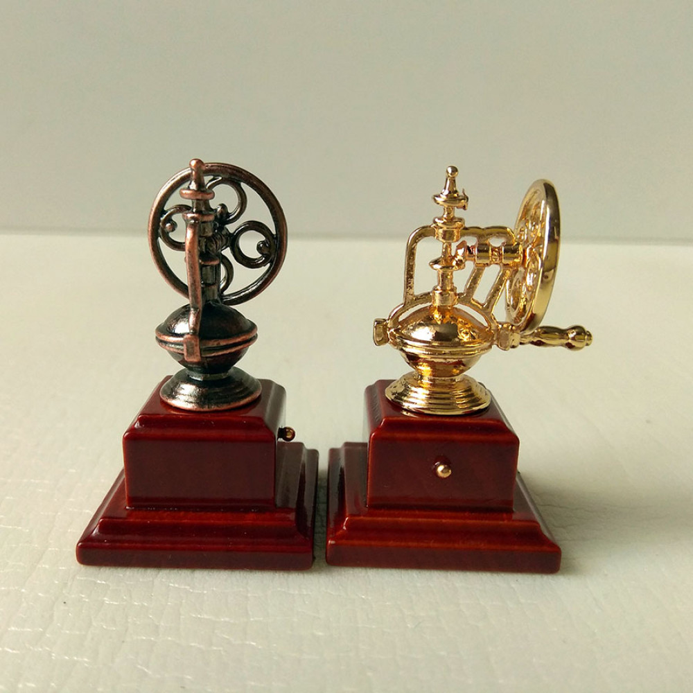 Миниатюрная кофемолка из металла для кукольного домика или тематического румбокса.