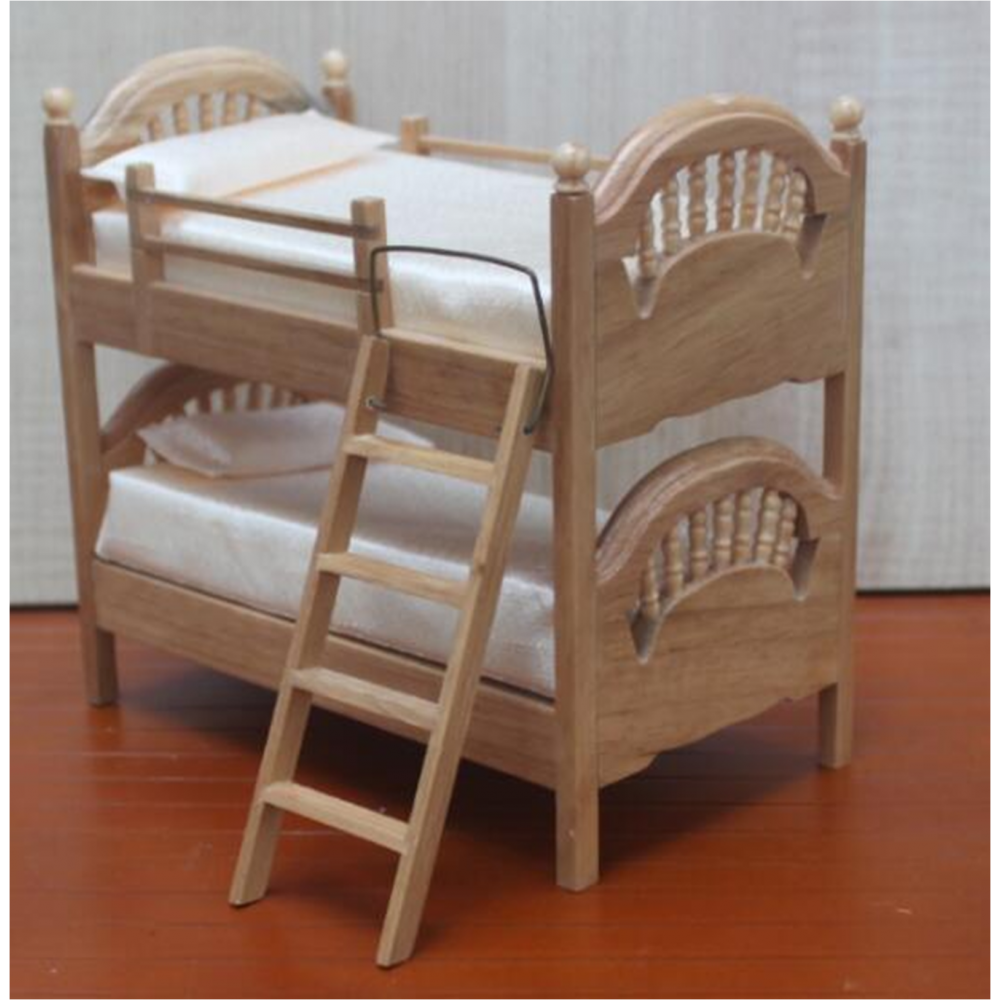 Кровать для кукол деревянная двухярусная. Масштаб 1:12. В комплекте: матрасики, подушки, лестница