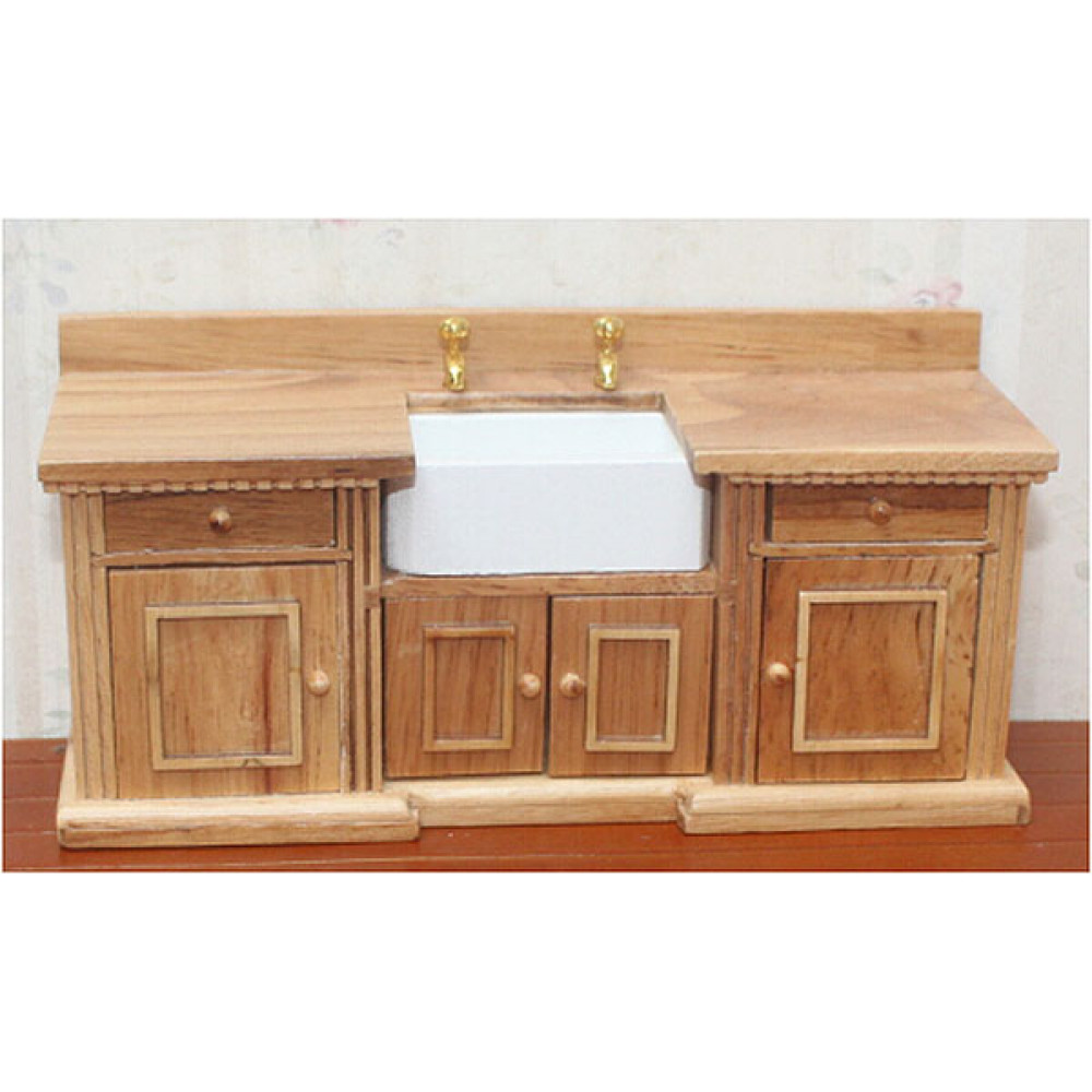 Кухня для кукол для оформления кукольного домика или румбокса в масштабе 1:12. Напольный модуль - с раковиной и тумбами, навесной модуль - с открытыми полочками, на которые можно расставить множество красивых миниатюрных мелочей для кухни. Посуду, бытовую технику и множество кухонной утвари также можно купить в нашем интернет-магазине