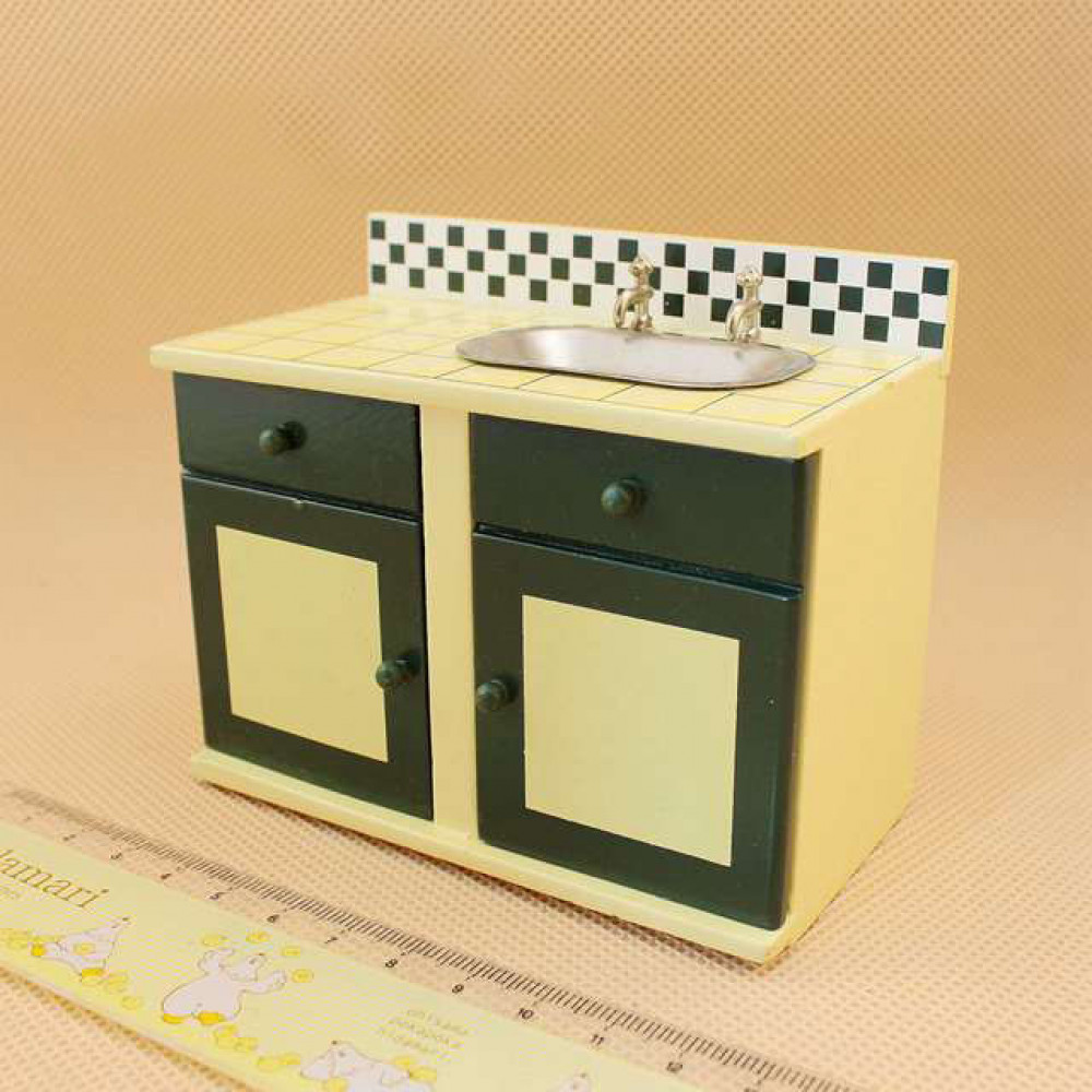 Миниатюрный кухонный гарнитур для кукол с обеденной зоной. Удобен тем, что отдельные модули можно располагать так, как позволяет это делать пространство кукольной кухни. Мебель предназначена для оформления кукольного домика или тематического румбокса в масштабе 1:12.