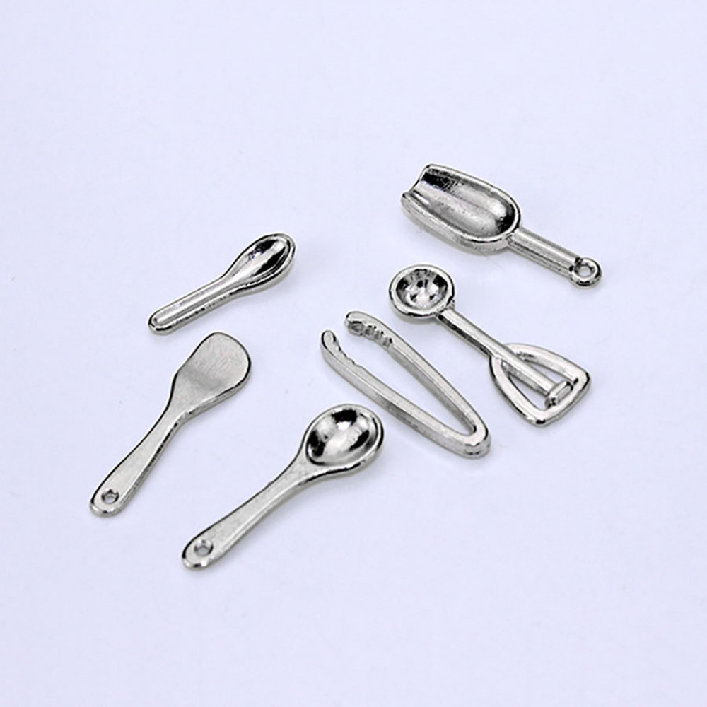 Набор кухонной утвари в "серебре" для кукольного домика в масштабе 1:12.