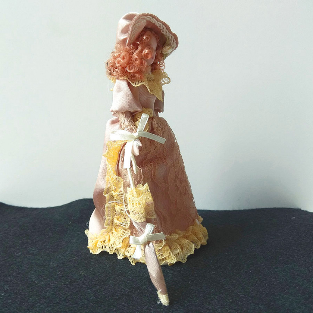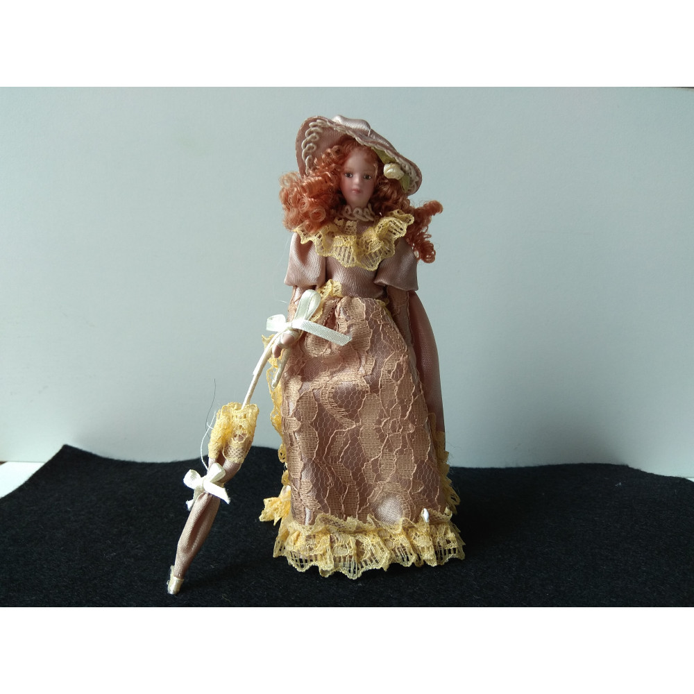 Кукла Дама в бежевом с зонтиком Миниатюра 1:12