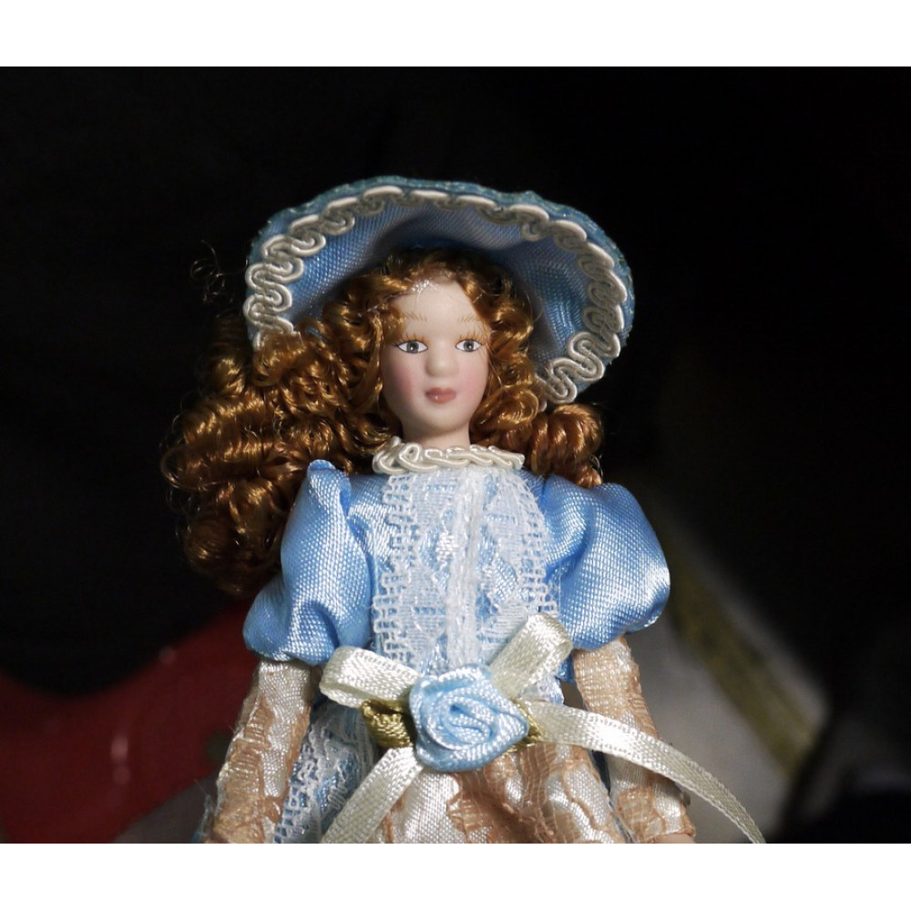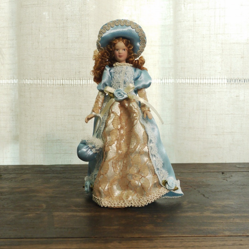 Кукла Дама в голубом платье Миниатюра 1:12