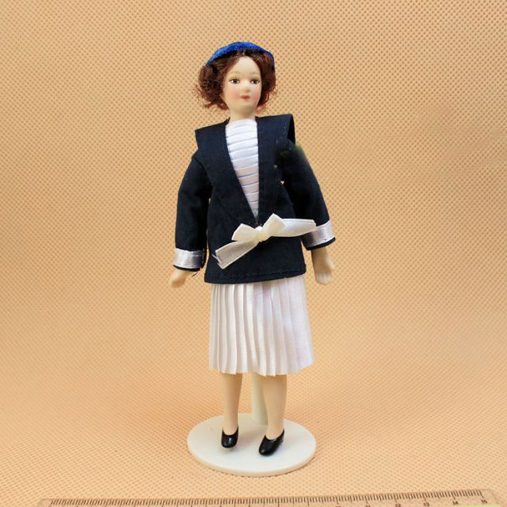 Кукла Девушка в белом платье с черным пиджаком Миниатюра 1:12
