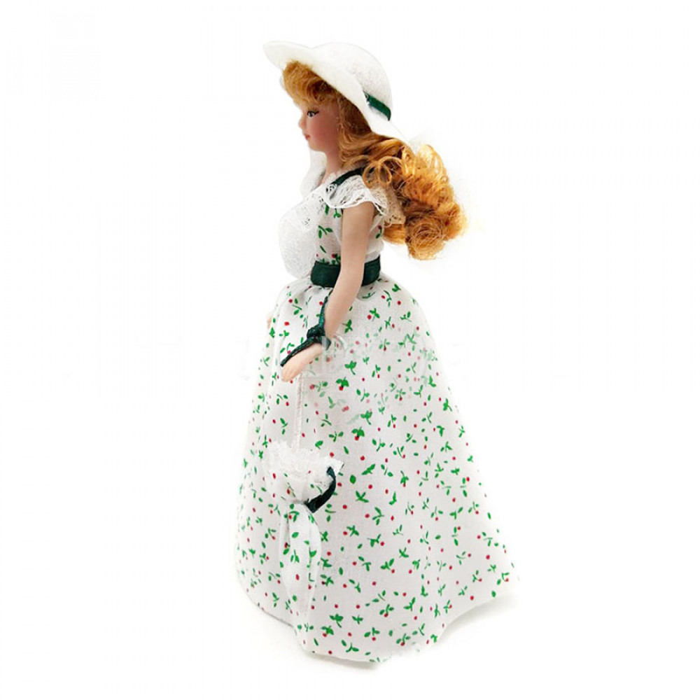 Кукла Девушка в летнем платье и шляпке Миниатюра 1:12