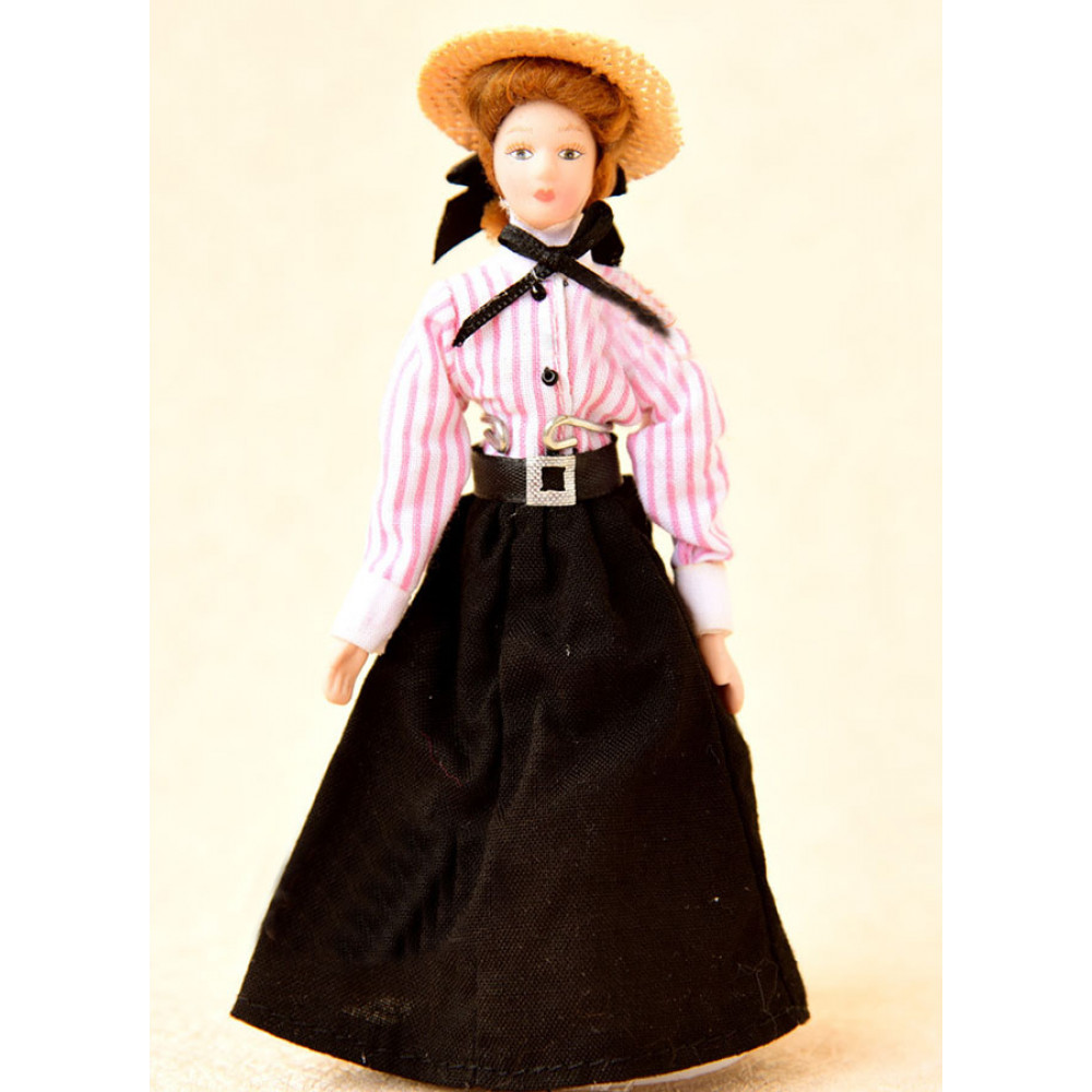 Кукла Девушка в соломенной шляпе Миниатюра 1:12