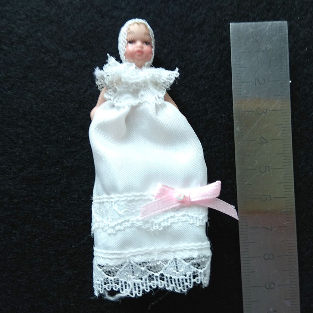 Кукла младенец в кружевах Миниатюра 1:12