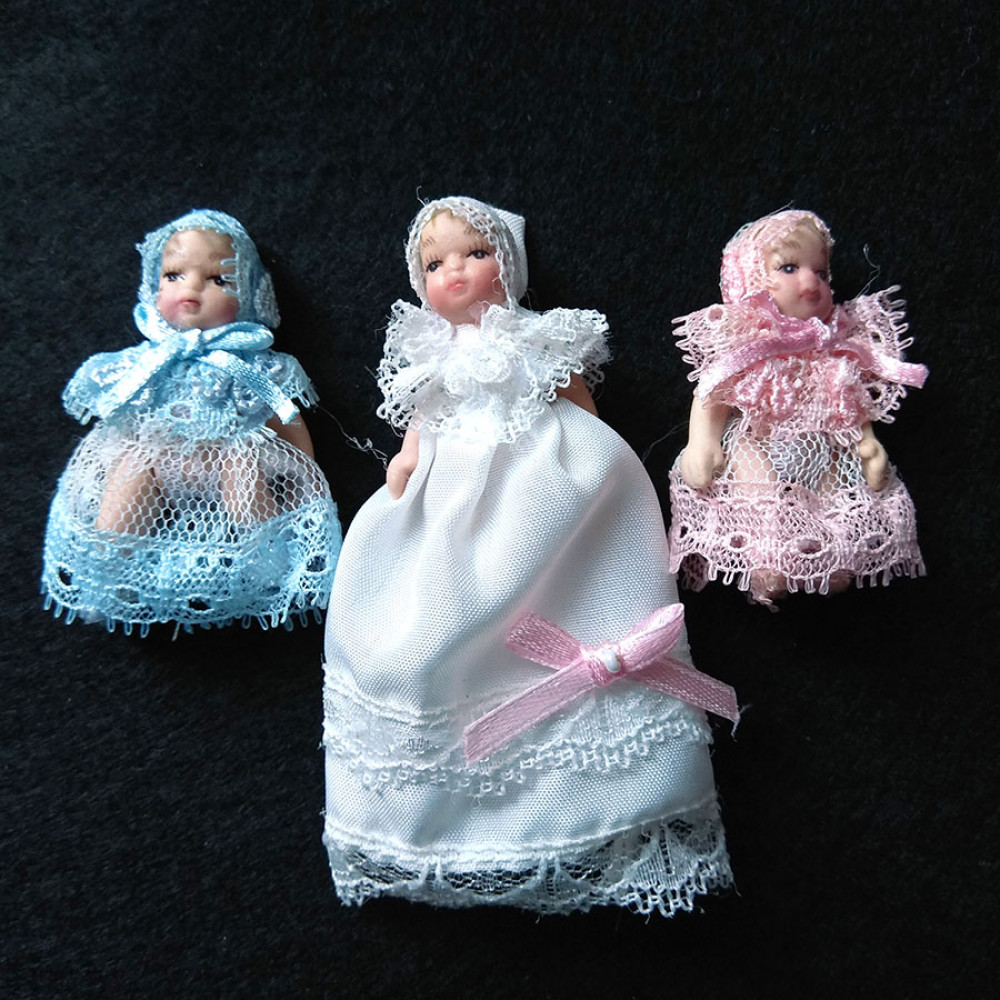 Миниатюрные интерьерные куколки для домиков и румбоксов в масштабе 1:12. Кукла младенец в Белых, розовых, и голубых кружевах.