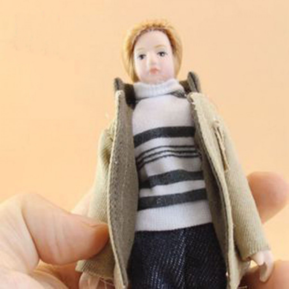 Миниатюрные куколки в разных нарядах для домиков и румбоксов в масштабе 1:12. Кукла мужчина в светлой куртке