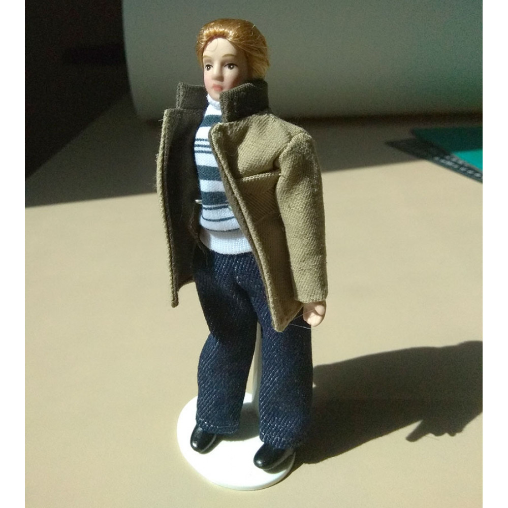 Кукла Мужчина в светлой куртке Миниатюра 1:12