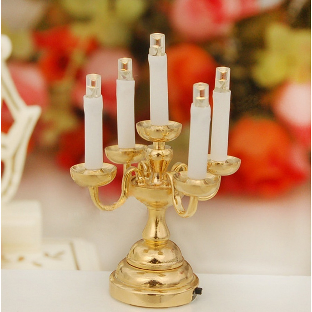 Канделябр на 5 свечей/лампочек LED. Миниатюрный светильник - с проводом и вилкой - включается в специальную кукольную розетку. В нашем магазине можно также приобрести такую розетку (с одним гнездом) на батарейке или удлинитель (на 6 гнезд), который включается в обычную электросеть.