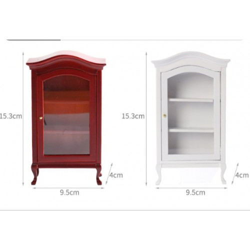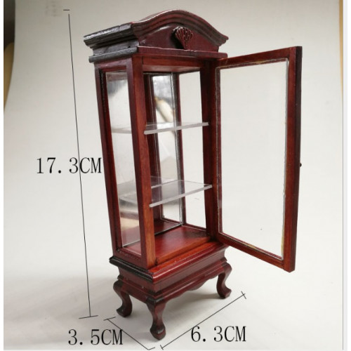 Миниатюрный деревянный застекленный шкаф со стеклянными полками украсит кукольную гостиную в румбокс..