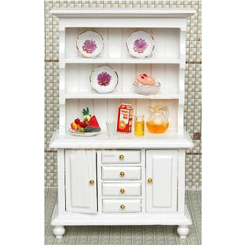Миниатюрный деревянный застекленный шкаф с полками и ящичками украсит кукольную столовую или кухню в..