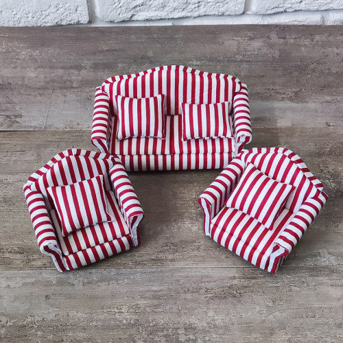 Набор мягкой мебели для кукол - диван и два кресла с подушками украсит рубмокс или кукольный домик м..
